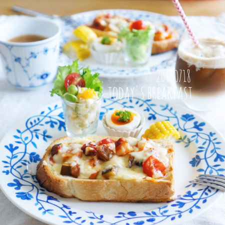 きょうの朝ごはん 蛸のラタトゥイユピザトースト