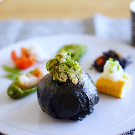 まんまるおにぎりにおくら乗せて。