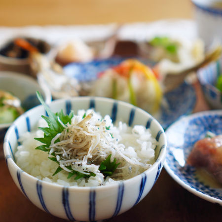ご飯の上にはおじゃことお醤油を少し。