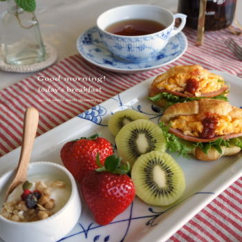 January 18, 2013 *today's note 冷たいけれどお天気はよしっ(o^^o) 週末を楽しみに 今日も頑張りましょ♪♬ *クロワッサンのオープンサンド(卵、ハム)*苺、キウイ*ヨーグルト 「+朝ごはん」カテゴリの最新記事 < 前の記事次の記事 >