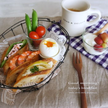 January 22, 2013 *today's note 雨の朝です… 気持ちはのんびりいきましょね♬ *バゲットサンド(ほうれん草&ハム、海老、クリームチーズ) *ゆで卵*スナップエンドウ、プチトマト*ヨーグルト、葡萄 「+朝ごはん」カテゴリの最新記事 < 前の記事次の記事 >