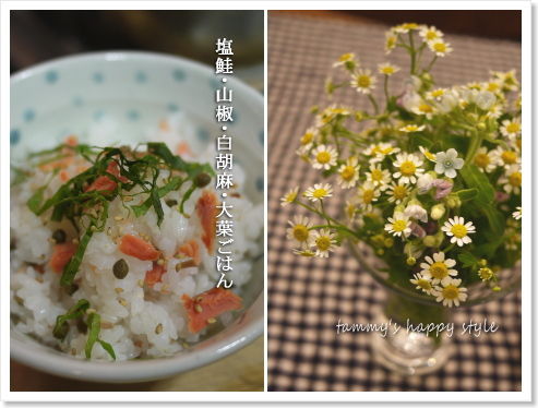 残りもん混ぜた「塩鮭山椒白胡麻大葉ごはん」 好評だったため